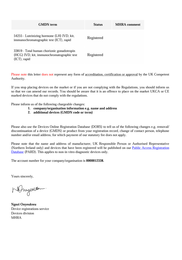 早孕产品-英国MHRA注册